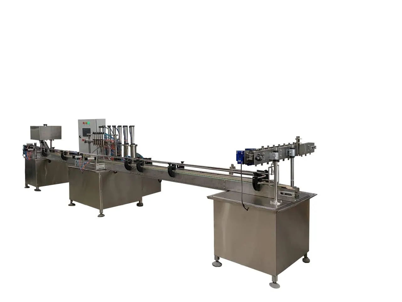 این دستگاه پرکن مایعات در تعداد 4 نازل به بالا قابل ساخت است که برای تولیداتی در تیراژ و ظروف با حجم پایین مناسب هستند. که معمولا از ساعتی 1500 عدد ظروف به بالا پر می کند و تعداد دربند این دستگاه هم به تعداد و حجم تولید دستگاه بستگی دارد.